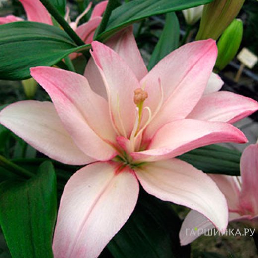 Лилия Бэнтли азиатская махровая /2 шт Цветок крупный, махровый. Лепестки кремово-розовые с розовым кантом и кончиками. Высота растения 100 см. Цветки лилии 17 см в диаметре. Период цветения июнь-июль. Морозостойкая.