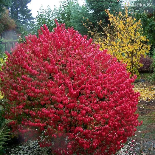 Бересклет крылатый -декоративный кустарник, высотой не более 1,8 метра. Его узкие вытянутые листья (до 7 см в длину при ширине не более 3 см) осенью приобретают характерный красный цвет, благодаря которому выгодно выделяются на фоне остальной садовой растительности. Еще большей декоративности растению придают плоды в виде коробочек – тоже ярких и красных, для которых характерна повышенная зимостойкость.