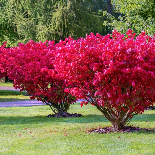 Бересклет Ред Каскад - высокий кустарник, наиболее декоративный осенью. Листья окрашиваются в багряно-красный цвет, а на месте мелких зеленоватых цветков созревают эффектные плоды необычной формы, которые украшают кустарник даже зимой. Они представляют собой темно-красные или розовые четырехгранные коробочки, которые скрывают ярко-оранжевую семенную капсулу. В молодом возрасте растение прямое и довольно узкое, со временем разрастается вширь.