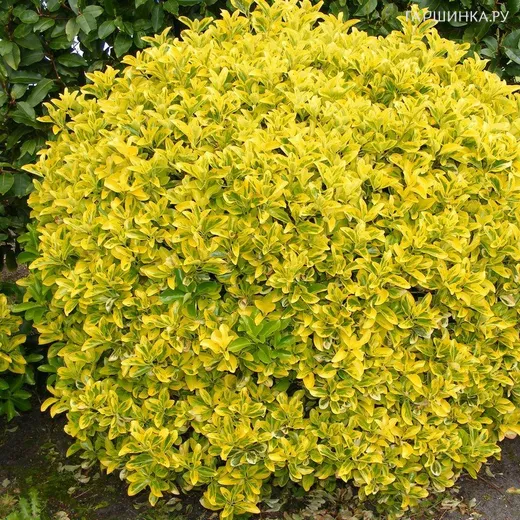 Бересклет японский Ауреомаргината - относится к роду Бересклет, принадлежащему семейству Бересклетовые. В естественной среде обитания он встречается в Японии, Китае и Корее. Это вечнозеленое растение, имеющее форму кустарника или дерева, высотой в культуре не более 1,5 метров. У бересклета японского простые короткочерешковые глянцевые кожистые листья овальной или обратнояйцевидной формы с мелкозазубренной кромкой. На побегах листья расположены супротивно. Длина их колеблется в пределах 3 - 8 см. Цветки мелкие, диаметром около 1 см, зеленовато-белые, собраны в многоцветковые соцветия-зонтики. время цветения – июнь. Плоды – гладкие округлые оранжево-розовые капсулы 0,6 - 0,8 см в диаметре с тёмными семенами. Распространение Бересклета японского в садовой культуре и городском озеленении обусловлено его неприхотливостью, стойкостью к заболеваниям и нечувствительностью к загрязнению воздуха. В настоящее время выведено множество декоративных сортов, отличающихся размерами растения и окраской листьев. К наиболее популярным относится сорт- «Albomarginatus» у него зелёные листья с узкой белой каймой. Зимостойкость до -23°С. Ввиду низкой зимостойкости в Средней России он может сохраняться только под снегом, поэтому растет как низкорослый кустарник высотой около 1 м. Для него более благоприятны условия на юге России, в Крыму, на Кавказе, в Молдавии, в южных районах Белоруссии и Украины.