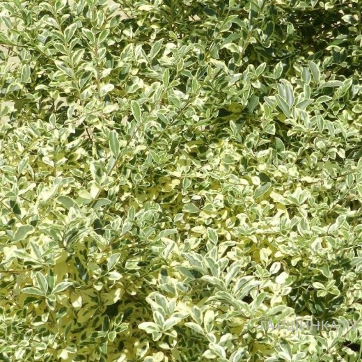 Бирючина Мюсли - листва пестрая: светло-серо-зеленая с кремово-белыми краями, иногда настолько широкими, что покрывают всю ширину листа. Куст густой, раскидистый, с изогнутыми ветвями. В начале лета на кусте образуются грозди ароматных белых цветов, которые превращаются в сине-черные ягоды. Хорошо переносит обрезку, может использоваться для живой изгороди. Высота взрослого растения составляет 1,5-2,5 м.