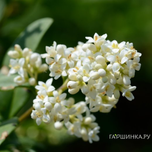 Бирючина обыкновенная - листопадный, густоветвистый кустарник до 5 м высотой. Листья продолговато-яйцевидные или ланцетные, голые, кожистые, сверху темно-зеленые, снизу светлее. Цветки мелкие, белые, душистые, в густых стоячих метелках до 6 см длиной. Цветет в первой половине лета на протяжении 20-25 дней. Плоды блестящие, ягодообразные, черные костянки, сохраняющиеся на кустах до января.