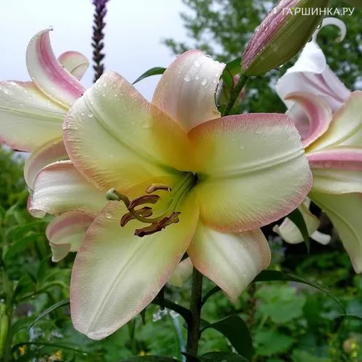 Лилия Буги Вуги ОТ-гибрид /2шт - Цветки крупные, диаметром 25 см. Лепестки бледно-бело-желто-зеленые или лимонные, на концах светлеют. Окантованы узкой, едва заметной, розовой каймой. Имеет тонкий нежный аромат. Цветки направлены в сторону и вверх, форма цветка чашевидная. Высота растения 120 см. Цветет в июле-августе.