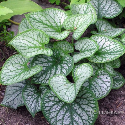 Бруннера Джек Фрост очень декоративный сорт с серебристыми листьями и темно-зеленым узором. Высота растения до 50 см, в ширину разрастается до 40 см. Цветет в конце апреля-начале мая мелкими изящными голубыми цветками, декоративна на протяжении всего вегетационного периода. На одном месте может произрастать до 15 лет. Сорт зимостоек, выдерживает морозы до -29 °C.