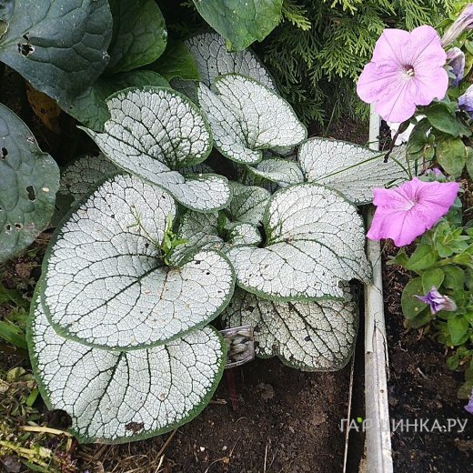 Бруннера приехала в марте. На корешке были только почки. Не посадила еще в грунт, а она за месяц успела зацвести. Цвет листьев пока больше зеленый, но намечается переход к серебристому.