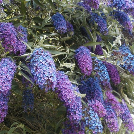 Буддлея Давида Эмпайр Блю - листопадный, красивоцветущий, раскидистый кустарник с поникающими на концах ветками. Высота 1,5-2,5 м, диаметр кроны 2- 2,5 м, цветок до 1,5 см, соцветие до 30 см. длиной. Листья ланцетные, сверху темно-зеленые, снизу- бело-войлочные, опушенные, цветки сине-фиолетовые с медовым ароматом, в густых прямостоящих или слегка поникающих колосовидных соцветиях.
