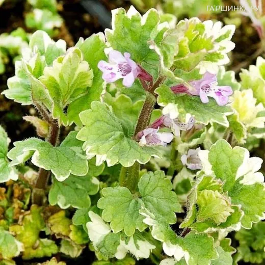 Будра Вариегата плющевидная - относится к плющевидным растениям с ползучими, быстрорастущими побегами. Побеги ползучие, часто более 50 см длиной, обильно ветвящиеся, укореняющиеся в узлах и образующие плотные коврики. Листья длиной до 3 см, округло-зубчатые с белой окантовкой. Осенью листья будры становятся розовато-зелеными.