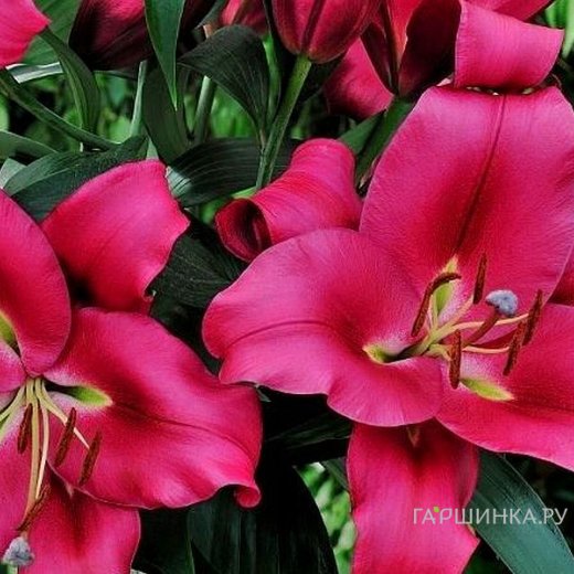 Лилия Карбонеро ОТ-гибрид /2шт - Растение достигает в высоту 100 – 120 см. На сочных, прочных цветоносах возвышаются крупные цветки, диаметром 20 см. Лепестки имеют окраску от темно-вишневой до винно-красной с желтым центром и коричневыми пыльниками. Аромат схож с трубчатыми лилиями, но отличается более нежными нотками. Цветение продолжительное и обильное, в июне – июле.