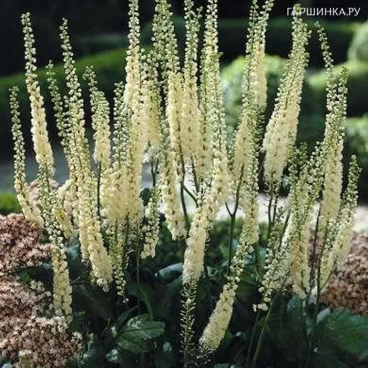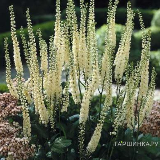 Цимицифуга (Клопогон) Кордифолия – многолетнее растение высотой около 150 сантиметров с облиственным стеблем, густо-зелеными листьями. Цветки мелкие, серебристо-бело-кремовые, собраны в длинные и узкие цилиндрические кисти до 30 см длиной. Цветет в июле-августе 30-35 дней. Зимостоек без укрытия.