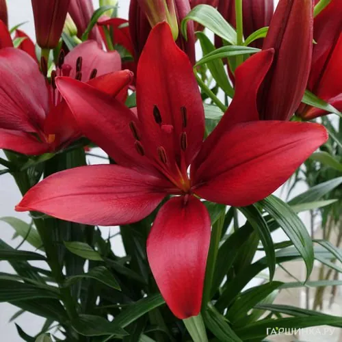 Лилия Корлеоне ЛА-гибрид /2 шт - Цветки яркие, темно бордовые. Растение высотой до 110 см. Цветки диаметром 20 см. Тонкий нежный аромат. Период цветения июнь-август.