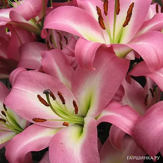 Лилия Корсини ОТ-гибрид/2шт - Цветы ароматные диаметром 25 см, розовые с желто- зеленым зевом. Высота 120 см. Цветение в июне-июле.