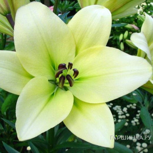 Лилия Курьер ЛА-гибрид/2 шт Цветки белоснежные с лаймовым оттенком и контрастными темно-бордовыми пыльниками. Растение высотой до 100 см. Цветки диаметром 17 см. Тонкий нежный аромат. Период цветения июль-август.