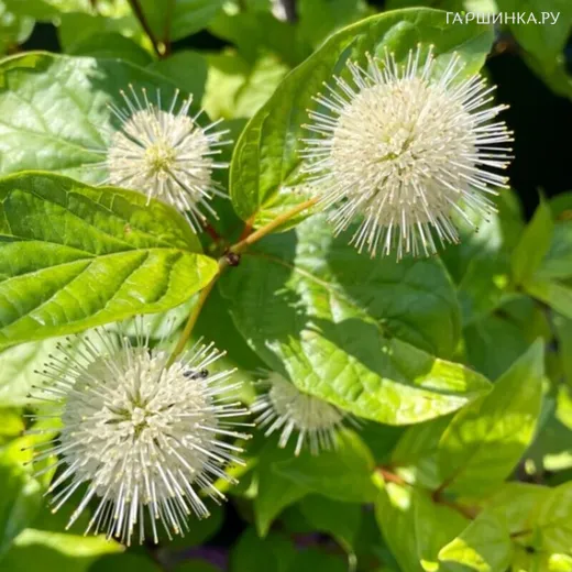 Цветоголовник западный Файбер Оптикс - листопадный кустарник с ветвящейся округлой густой кроной. Цветки ароматные, кремово-белые, с сильно выступающими тычинками, собраны в головчатые соцветия диаметром 2-3 см. Цветение привлекает насекомых-опылителей. Растение выносливое и неприхотливое. Цветочные почки закладываются на однолетних побегах, поэтому возможное обмерзание никак не сказывается на декоративных свойствах растения. Цветет в конце июля - начале августа. Требует богатой и очень увлажненной почвы со слабокислой реакцией и защищенного полутенистого местоположения.
