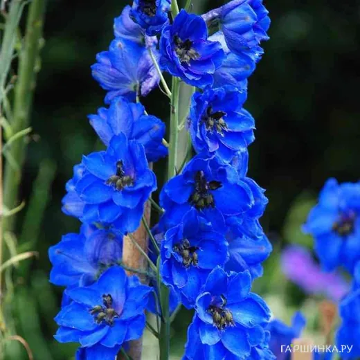 Дельфиниум Блу - многолетнее садовое растение. Куст высотой 60—140 см. Цветы насыщенного сине-голубого оттенка. Соцветие метельчатое, длиной до 60 см.