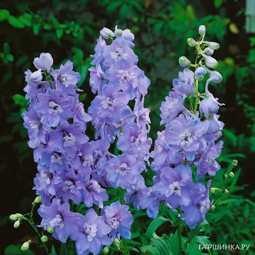 Дельфиниум Пацифик Гинивер - Многолетнее растение, высотой до 200 см. Цветки полумахровые до 6,5 см в диаметре, густо-сиренево-розовые с белым глазком. Цветет в июне-июле 14-20 дней. Соцветие плотное, конусовидное, до 80 см длиной.