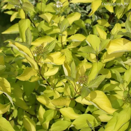 Дерен Ауреа - кустарник высотой до 2 м, листья полностью жёлтые, цветки белые, собраны в щитковидные соцветия, цветёт почти всё лето, плоды белые с cиневой, морозоустойчив, место солнечное, к почвам нетребователен, но предпочитает сырые места.