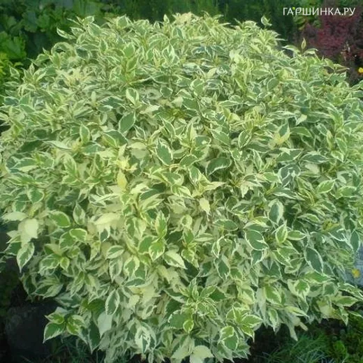 Дерен Элегантиссима - Этот листопадный кустарник очень хорошо разрастается, достигая трехметровой высоты. Крона растения может разрастаться в целые «острова» до 5 метров в диаметре, причем ветки, достигая земли, укореняются. Листья яйцевидной формы, темно-зеленого цвета с белой каймой. Цветки зонтичные, период цветения приходится обычно на май-июнь. Возможно повторное цветение в августе-сентябре. Плоды мелкие, белого или голубовато-серого цвета, размером с горошину. Корневая система состоит из множества мелких и тонких корней, именно поэтому куст может быстро высохнуть в условиях жесткой засухи. В остальном дерен белый одинаково хорошо переносит морозную зиму и жаркое лето. Долговечность кустарника – более 25 лет.