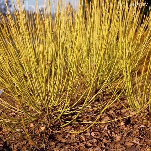 Дерен Флавирамеа - лиственный, быстрорастущий кустарник. Родина его - Северная Америка. Отличается способностью давать вокруг себя массу корневых отпрысков. Крона широкая, округлая, образована многочисленными побегами жёлто-оливкового или зеленовато-оливкового цвета, часть побегов растет вертикально, остальные полегающие, быстро укореняющиеся рядом с основным кустом. Корневая система - поверхностная . Высота взрослого растения достигает 2,5-3 м., диаметр кроны до 2,5-3 м. Годовой прирост примерно 30 см. в год. Листья овальные, заостренные, 5 - 10 см. длиной, ярко-зелёные, осенью могут приобрести красноватый оттенок. Цветки молочно-белые, собраны в щитковидные соцветия. Цветет дерен отпрысковый Flaviramea (Фламирамеа) с 5 года жизни растения, с конца мая две-три недели. Плоды несъедобные, мелкие, сначала - белые, созревшие - голубоватые ягодообразные костянки - созревают в конце августа - сентябре.