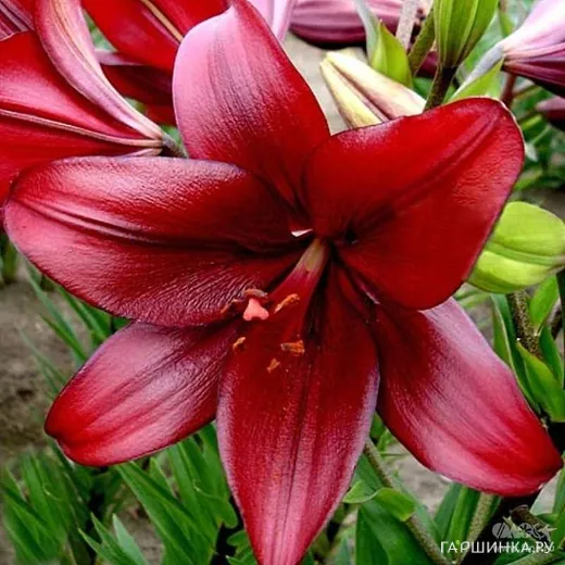 Красивейшая лилия! Цвет насыщенный, лепестки, как буд- то из бордового атласа, блестящие листья, сильные стебли. Луковицы пришли в отличном состоянии. Заказывала лилию два года назад. Сейчас она разрослась и я очень довольна своим выбором.