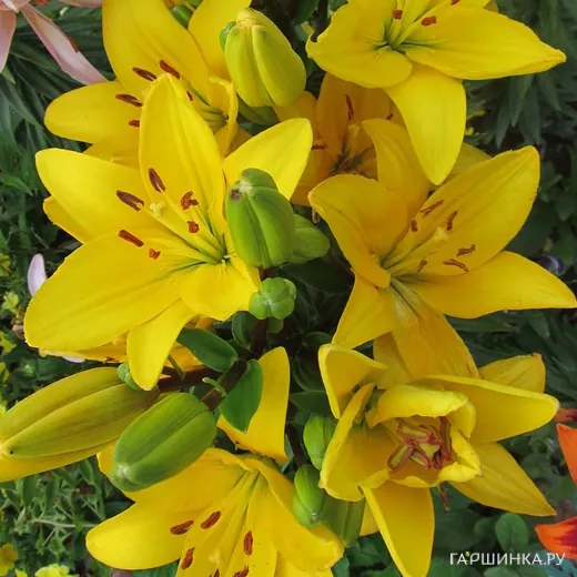 Лилия Эль Диво ЛА-гибрид желтая - относится к группе ЛА - гибриды. Многолетние , луковичные растения. куст плотный, лист узкий, зеленый. Цветки лилиецветные, 20 см, воронковидные, одиночные, или собраны в пирамидальные соцветия, расположены на конце цветоноса, лепестки цветка восковидной фактуры. Цветение обильное и продолжительное, декоративность сохраняется до конца осени. Высота растений 1,30 м, окраска цветка ярко-желтая, пыльники темные.