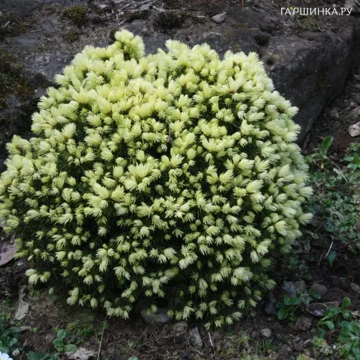 Ель канадская Ялако Голд - карликовый, вечнозеленый хвойник. Форма сферическая, к 10 годам высота и ширина всего 35 см, прирост медленный, 3-4 см. Хвоя мягкая, короткая, зеленая. Молодой прирост яркий, золотистый, позже кремово-зеленый.