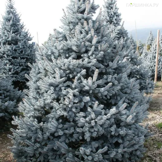 Ель колючая Костер - хвойное растение, самый популярный сорт среди "голубых" елей. К десяти годам вырастает до 3,0 м, диаметр 1,5 м. Максимальная высота до 10-15 метров, диаметр кроны до 4-5 метров. Прирост основного побега 5-15 см в год. Окраска хвои серебристо - голубая. Крона коническая, ветки горизонтальные. Хвоя игольчатая, длинная, очень пушистая.