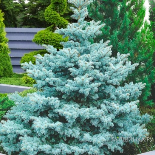 Ель колючая Блю Даймонд голубая - голубая ель (название сорта переводится как "Голубой бриллиант"). Данный сорт ели колючей выведен в 1990 году. Вечнозеленое дерево со стройной, ширококонической кроной.