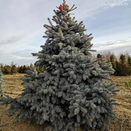 Ель колючая Блю Тринкет голубая - Довольно компактный сорт голубой ели. Средняя высота взрослого растения - около 6 метров, в оптимальных условиях может вырастать до 8 метров. Крона конусовидная, по мере роста становится более узкой. Средний диаметр кроны составляет около 4 метров. Ветви растут правильными плотными ярусами. Хвоя короткая, жесткая, колючая, серо-голубого цвета, матовая. Засухоустойчива, но лучше развивается на почвах с достаточной влажностью. Не выносит переувлажнения. Предпочитает суглинистые и супесчаные, хорошо увлажненные, дренированные почвы со слабокислой реакцией. Довольно высокая устойчивость в городских условиях.