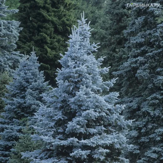 Ель колючая Кейбаб - Благодаря стройности кроны эта ель торжественна и строга. Её обычно сажают в парадной зоне сада. Достигая высоты 10-15 метров, она сохраняет правильную ярусно-пирамидальную форму без подсыхания нижних ветвей. Ветви мощные, не ломаются под тяжестью мокрого снега. Хвоя имеет оттенки от зеленого до серо-голубого. Ежегодный прирост 15-25 см. Форма кроны в молодости асимметричная, позднее ширококонусовидная, с очень густо расположенными ветвями. Ветви жесткие, отрастающие под прямым углом от ствола. Хвоя серебристо-голубая, колючая, густая, слегка серповидная, 10-12 мм длиной. Корневая система поверхностная. Прекрасно переносит пересадку во взрослом состоянии. В молодом возрасте поддается стрижке и образует непроходимые живые изгороди. Одно из главных достоинств Ели колючей то, что она не страдает от весенних заморозков и солнечных ожогов, хорошо мирится с высокими летними температурами, светолюбива.