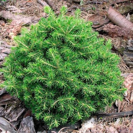 Ель обыкновенная Dan s Dwarf - Карликовая форма ели. Форма кроны шаровидная. Годовой прирост – около 3-4 см, после многих лет достигает 0,4 м в диаметре.  Хвоя короткая, светло-зеленого цвета. Рекомендуется для групповых и одиночных посадок в рокариях, альпинариях, для создания низкорослых хвойных групп и для выращивания в декоративных контейнерах.