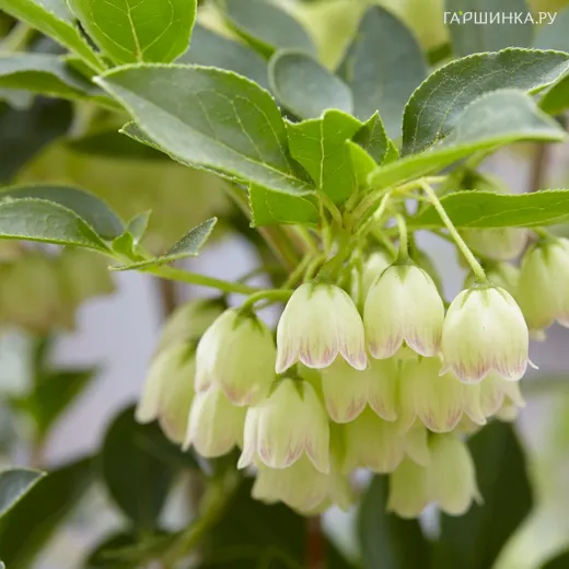 Энкиантус Преттикоат - японский кустарник из семейства Вересковых. Ценится за яркость красок листвы. Её весенне-летний зеленый наряд меняется на жёлтый и насыщенно-красный к окончанию летнего периода. Весеннее обильное цветение колокольчатых цветков и стойкость растения перед высокими и низкими температурами воздуха увеличивают популярность Энкиантуса. Высота и диаметр до 1,5-2 м. Побеги густо ветвятся. Цветет обильно в мае-июне. Цветение пышное длится около 3 недель. Пониклые, желтоватые, красные, розовые, лиловые или светло-оранжевые (в зависимости от сорта) цветки с красноватыми жилками собраны в зонтиковидные соцветия. Листья эллиптические, длиной 3-7 см, ярко-зеленые, собраны пучками на концах побегов, осенью окрашиваются в ярко-красный или оранжевый цвет, что делает растение даже более привлекательным, чем при весеннем цветении. По требованиям к почвам энкиантус колокольчатый близок к другим восточным красавцам - рододендронам. Выращивают его в саду, на террасах, патио, в контейнерах, и в зимних садах. В бесснежные зимы нуждается в укрытии.