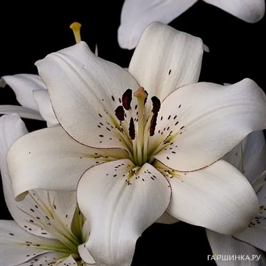 Одна из красивейших лилий, цветы кипельно белые, крупные.