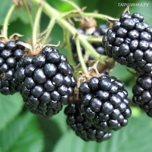Ежевика Эбони - Сорт раннего срока созревания. Куст мощный, ветви вертикально направлены, благодаря чему имеет компактное строение. Ягода крупная, до 20 мм в диаметре, сладкая, с нежным вкусом и ярко выраженным ароматом, высокое содержание сухих веществ, с сухим отрывом, хорошо транспортируется. Сорт новый. Проектная промышленная урожайность около 10-15 кг с куста. В приусадебном выращивании, при должном уходе урожайность может быть на порядок больше. В средней полосе России требует укрытия.