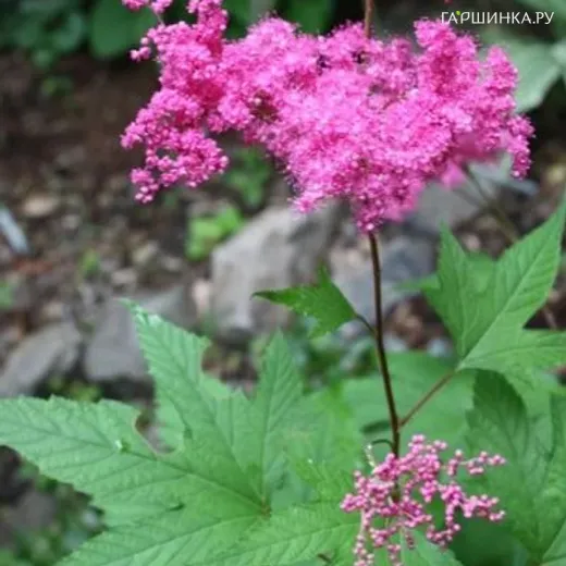 Филипендула purpurea - это невысокий длиннокорневищный травянистый многолетник гибридного происхождения, известный в культуре, главным образом, в Японии. Также встречается в Корее, Северо-Восточном Китае и на Дальнем Востоке России. Предпочитает влажные леса и поляны, образуя рыхлую заросль. У него декоративны и пальчатые листья, и метелки мелких тёмно-розовых или пурпурных цветков. Цветение наступает в июле, длится на протяжении месяца.Растение хорошо переносит низкие температуры, но не любит временную засуху. При выборе места для посадки предпочтение лучше отдать солнечным местам или полутени. На зиму укрытия не требуются.