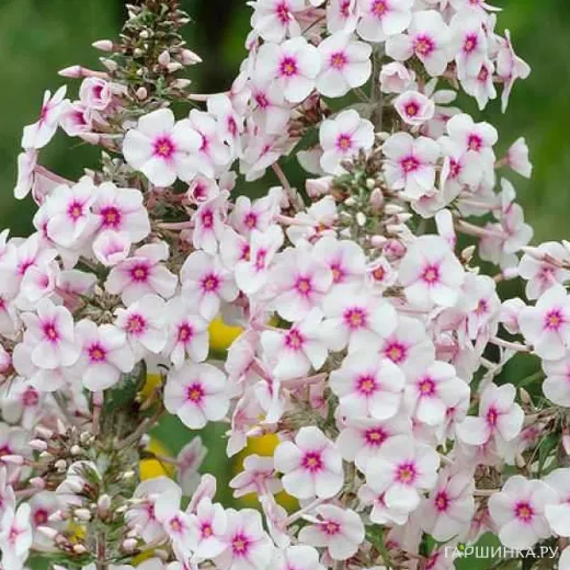 Продавец: ИНН 350902477384Флокс Дельта пирамидальный - Цветки белые с лиловым глазком и лучиками. Соцветие узкое, цилиндрическое, плотное. Высота: 1 м. Длительное цветение, прочный куст гармоничной формы. Период цветения: Июнь-август. Нарастает хорошо. Зона зимостойкости 5 ( -29°С).