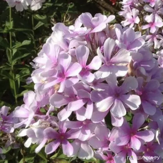 Флокс Егорка - Цветки звездчатые, белые с сиреневыми тенями, со сгущением к центру и пурпурным глазком. Соцветие округлое, плотное. Компактный прочный куст. Быстро разрастается. Не выгорает, устойчив к неблагоприятным погодным условиям и болезням. Высота взрослого растения 90 см. Цветки в диаметре 3 см. Цветение июнь-июль.