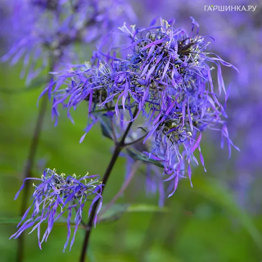 Флокс Гений метельчатый - высота варьируется от 0,6 до 0,9 м. Обычное сечение составляет 0,4 м. Длина цветоносов достигает иногда 0,3 м. Листья на ветках очень густы. Сами листья относятся к ланцетному типу. Они нешироки и имеют светло-зеленый окрас. Отмечается, что соцветия накрывают куст на манер обычной шапочки. Листовая пластина слегка изгибается. Она завершается слабым заострением. Известно, что Гений относится к разряду метельчатых флоксов. В составе соцветий присутствует от 40 до 50 отдельных бутонов. Сечение их доходит до 40 мм. Обычно цветы окрашены в сиренево-голубой тон, но в вечернее время приобретают насыщенную синюю окраску. Лепестки волнистые.