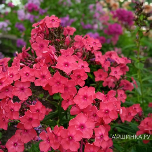 Флокс Иван-Заря - Светло-оранжево-красный с вишневым колечком, очень яркий, слегка седеет на солнце. Соцветие округлое, плотное. Компактный прочный куст. Быстро разрастается. Высота взрослого растения 90 см. Цветки в диаметре до 4 см. Цветение июль-август.