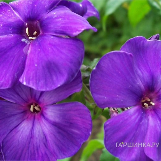 Флокс Магия - Цветок сине-фиолетовый с небольшим просветлением в центре и темно-фиолетовым глазком, не выгорает. Соцветие округлое, плотное. Компактный прочный куст. Высота взрослого растения 80 см. Цветки в диаметре до 3,8 см. Цветение июль-август.