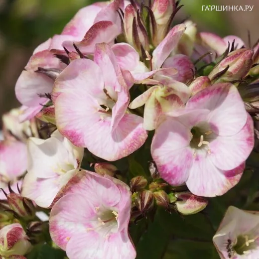 Флокс метельчатый Болд энд Бьютифул - Многолетнее травянистое растение. Период цветения: июль-сентябрь Высота куста: 50-60 см Ширина куста: 50 см. Очень необыкновенный нежный сорт. Цветки двухцветные: в центре розовые, а по краям лепестков светло-зеленые. Соцветия крупные на относительно коротких стеблях. Листья здорового темно-зеленого цвета. Устойчив к болезням.