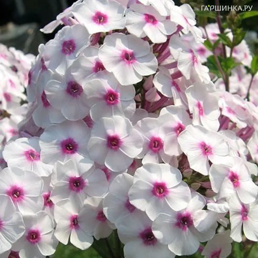Флокс метельчатый Граф Цеппелин - Белый с малиновым глазком. Соцветие полушаровидное, разветвленное, большое, рыхлое. Куст компактный, мощный. Цветки очень нарядные, собраны в крупные соцветия полушаровидной формы. Цветки крупные 3-3,5 см в диаметре Аромат: сладкий. Куст до 80 см высотой. Цветение продолжается с июля по август.