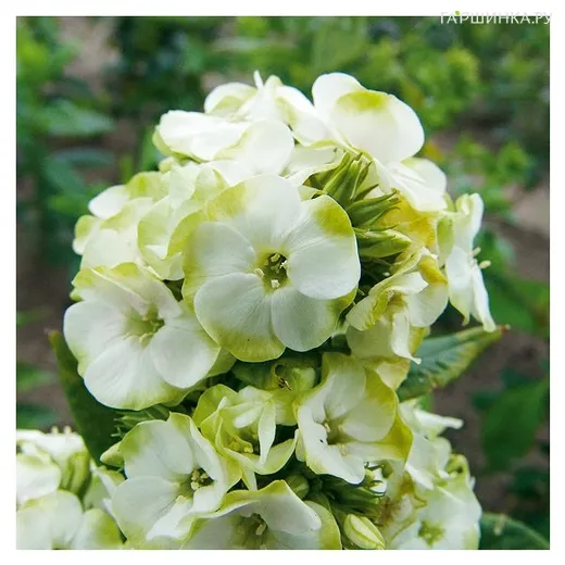 Флокс метельчатый Жадэ - Белый с зелеными мазками по краю лепестка. Соцветия крупные на относительно коротких стеблях. Растение компактное и устойчивое к заболеваниям. Период цветения: июль-сентябрь. Высота куста: 40-60 см. Диаметр цветка 1,5-2 см.