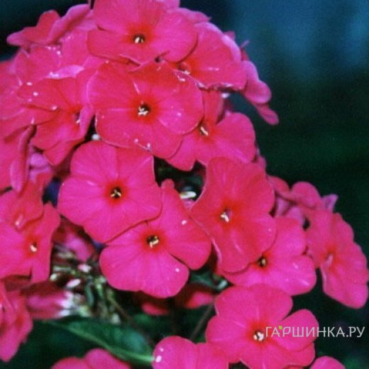 Флокс Пламя - Темно-карминно-красный цветок с малиновым оттенком, насыщенный, красивый, очень яркий. Совершенно не выгорает на солнце. Соцветие округло-коническое. Куст прямостоячий, прочный. Высота взрослого растения 85 см. Цветки в диаметре до 4 см. Цветение июль-август.