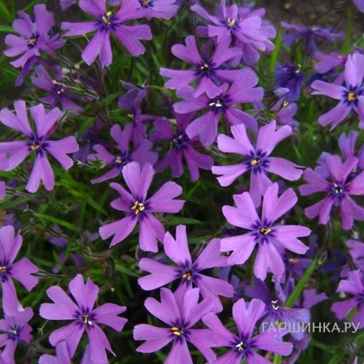 Флокс шиловидный Пепл Бьюти Лилово-фиолетовый с сине-фиолетовыми лучиками от центра. Цветок с сильно разделенными лепестками. Хорошо разрастается, образуя подушки высотой до 12-15 см. Диаметр венчика 2,2-2,5 см. Цветение: май-июнь.