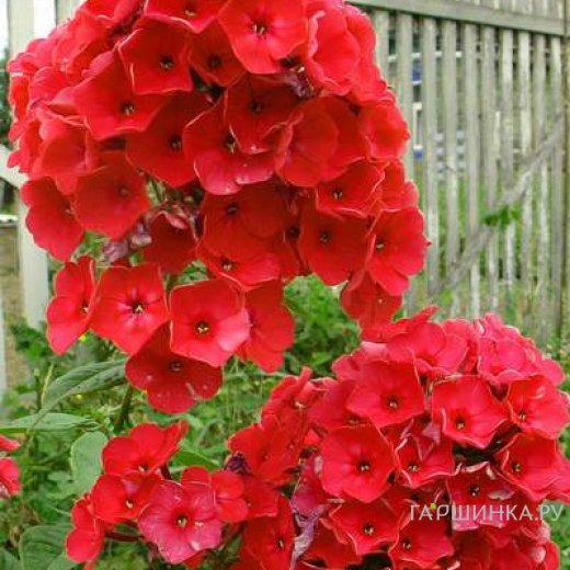 Флокс метельчатый Red Ярко-красный, пылающий цвет бутонов, цветки пяти лепестковые, душистые, диаметром 1,5-3 см. Куст полу раскидистый, прочный, хорошо разрастается, стебли темные, высотою до70 см. Флокс цветет обильно с июля до самых заморозков, сопровождая свое цветение очень приятным ароматом.