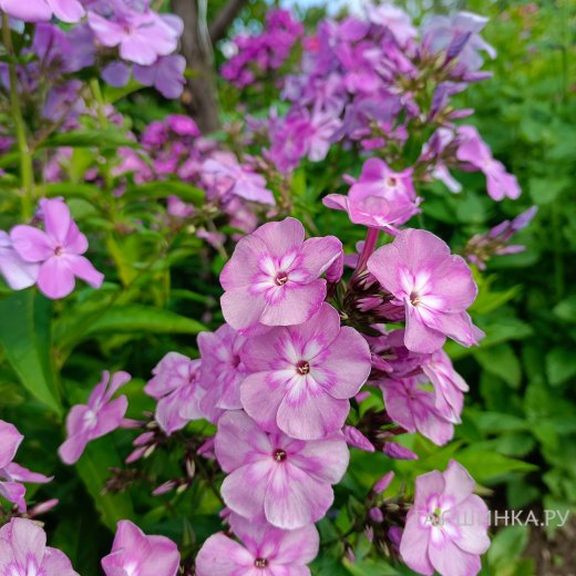 Флокс Селена - Корчагин, Борисова, 2012,.Эффектные темно-розовые цветки с серебристой дымкой, в центре белая звездочка. Дымка особенно ярко выражена в прохладную погоду. Соцветие крупное, коническое, плотное. Компактный прочный куст. Быстро разрастается. Высота взрослого растения 70-80 см. Цветки в диаметре 4,3 см. Цветение июль-август.