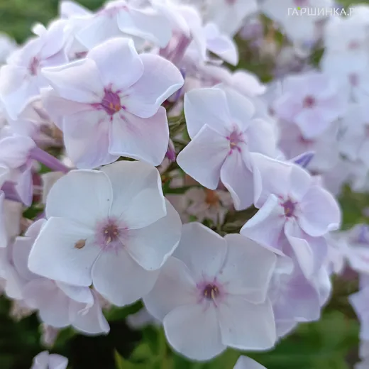 Флокс Сиреневый туман - Цветок сиреневый с дымкой, в центре светлая звездочка. Соцветие округло-коническое, плотное.. Высота взрослого растения 80 см. Цветки в диаметре до 4 см. Цветение июль-август.