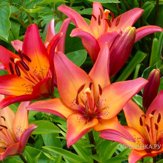 Лилия Форевер Марджоли азиатская/2шт - цветок оранжево-розовый, желтый центр. Высота растения 100 см. Цветки лилии 17 см в диаметре. Нежный аромат. Период цветения июнь-июль.