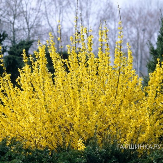 Форзиция Уикэнд - декоративный, листопадный кустарник. Куст прямостоячий, 1,5-2,0 м, формируется легко,побеги густые, многочисленные, поникающие, отклоняются дугообразно и переплетаются. Лист светло зеленый, яйцевидно-ланцетный, желтовато-зеленый или бронзово-красный. Окраска цветка ярко-желтая, цветок крупный, распускается рано, до появления листвы.