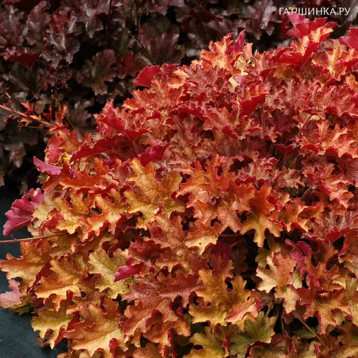Гейхера Джинжер Пич - это компактное многолетнее растение высотой до 30 см и в ширину до 60 см. Одной из особенностей сорта является очень быстрое разрастание основной части растения, благодаря чему гейхера популярна у тех садоводов. Листья глубоко рассеченные, сильно гофрированные. Джинджер Пич уникальна благодаря тому, что меняет свой цвет во время всего цветения. Листья преимущественно в оранжевых тонах с розоватой серединкой, однако в начале сезона преобладают нежные персиковые оттенки, придающие гейхере внешнюю нежность и простоту. В течении лета окрас изменяется на изысканные коралловые тона. Когда становится прохладнее растение начинает приобретать медно-золотой отлив. Во второй половине лета эффектный вид дополняют мелкие белые цветочки на длинных стеблях. Предпочитают полутень, но может расти и на солнце, и любую хорошо дренированную почву. Зона морозостойкости - 4. Подходят для бордюров, контейнеров, альпинариях и рокариях.